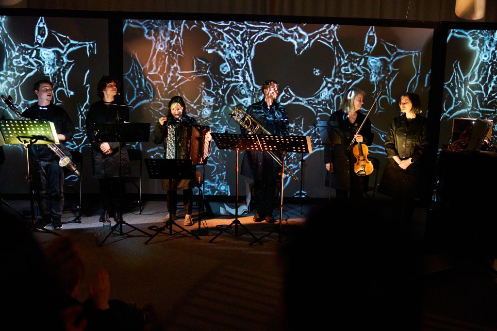 Twin works for an orchestra of in-vitro cell cultures interpreted by electronic instruments and acoustic ensemble. More info can be found on the project homepage. First performance was at The Cell during Kulturnatt Stockholm, in April 2025.